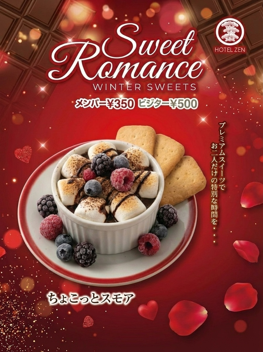 バレンタインやホワイトデーの季節!冬のゼンスイーツはスモアをご用意しております。